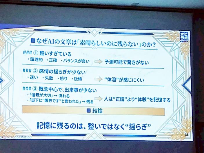 「記憶に残るのは整いではなく揺らぎである」「人との繋がりは人にしかできない」姿勢を大切に、得た学びを実践していきたいと思います。